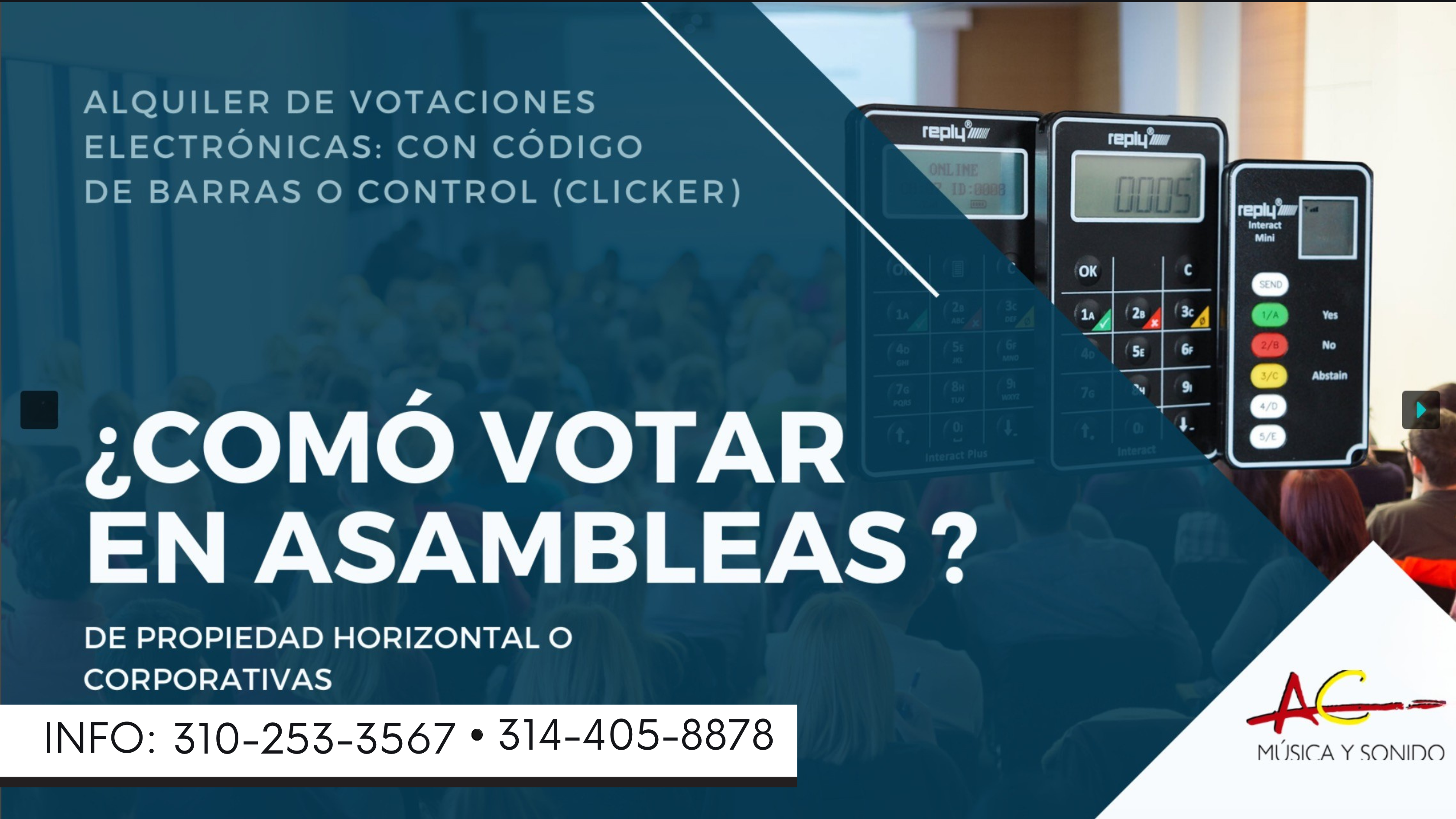 También tenemos equipos audiovisuales para que el evento tenga todo lo necesario para ser un éxito.